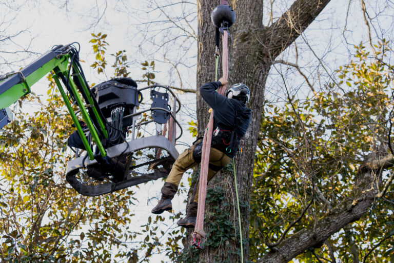 Although it’s entertaining to watch us swinging in the trees, using our high-end equipment to remove your tree, you don’t need to be present during the process. However, Perry and the team will welcome your company if you want to be.